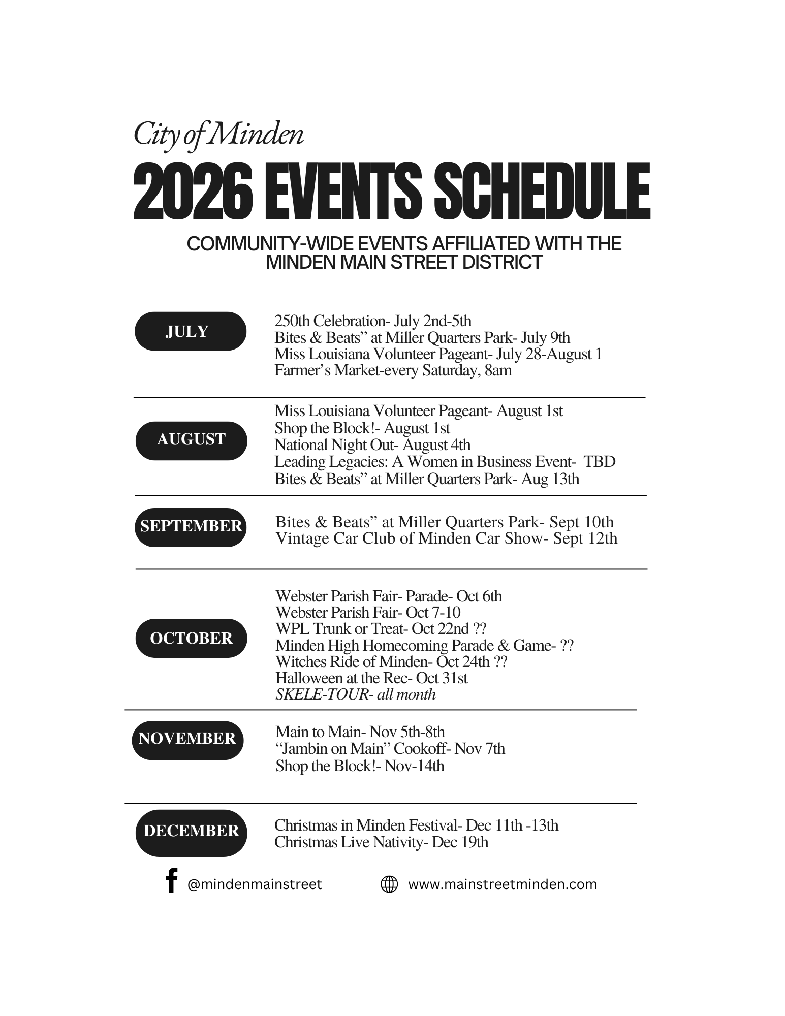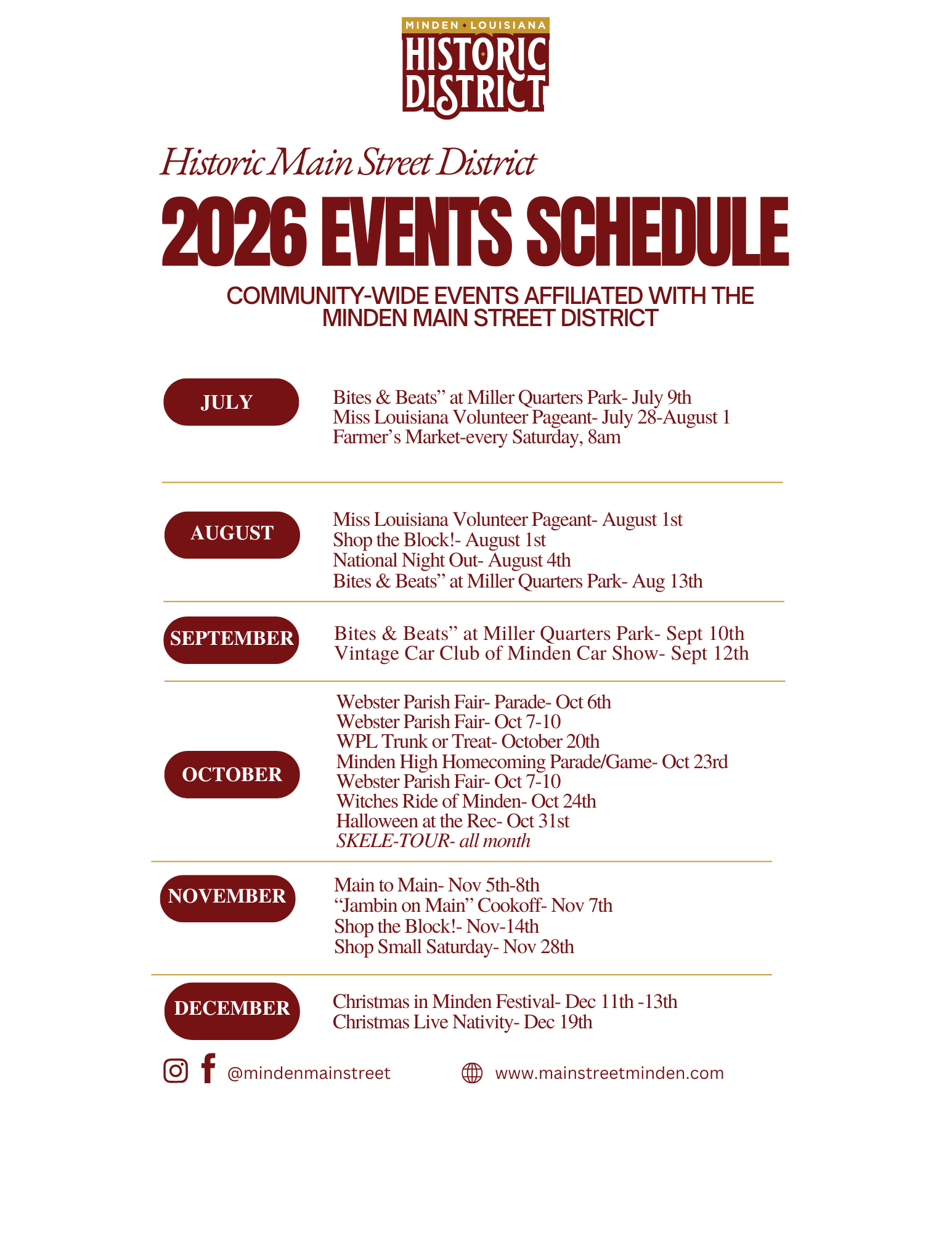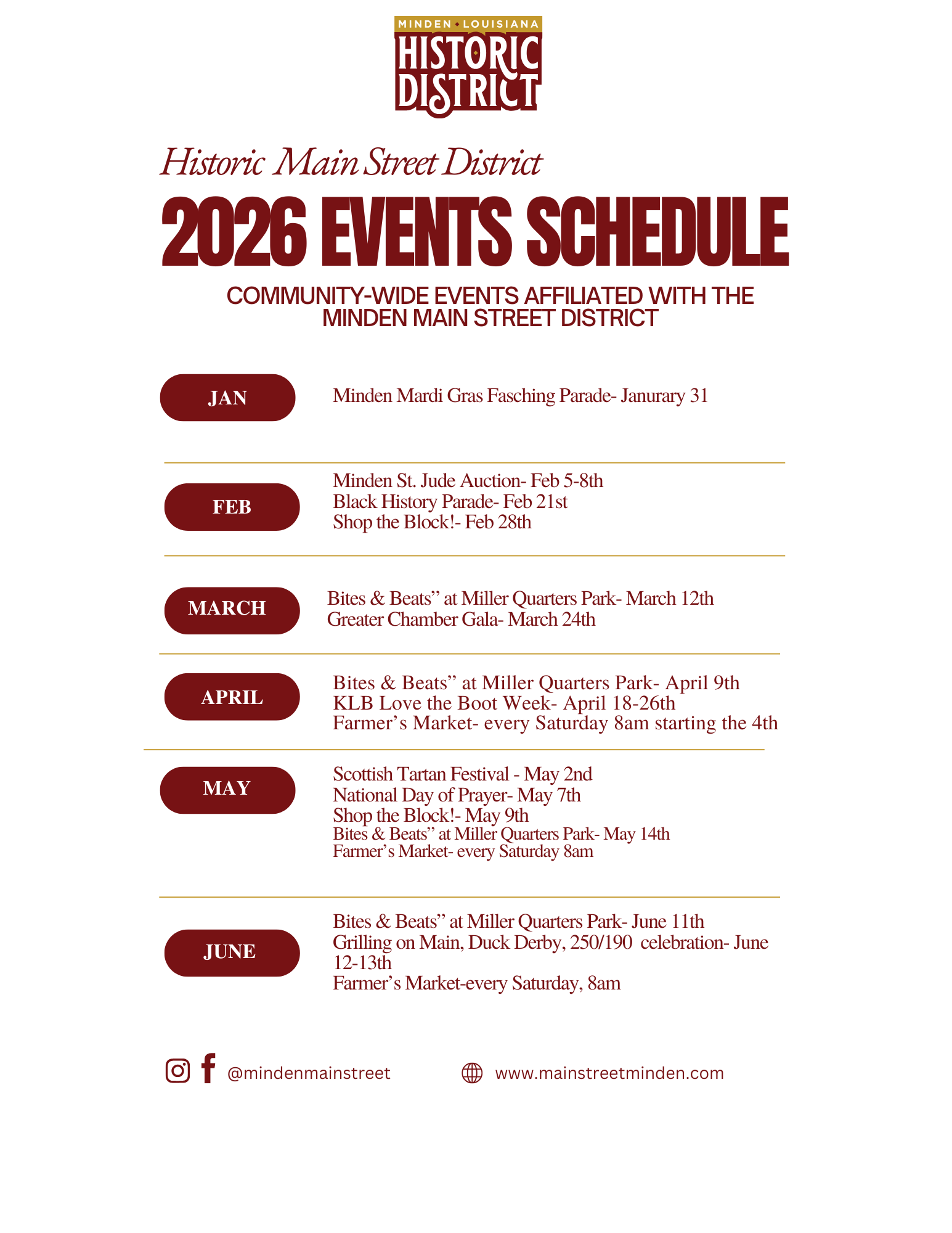 Established in 1987, the Minden Main Street program is dedicated to preserving our rich history by fostering economic growth and restoring our cherished historic buildings.