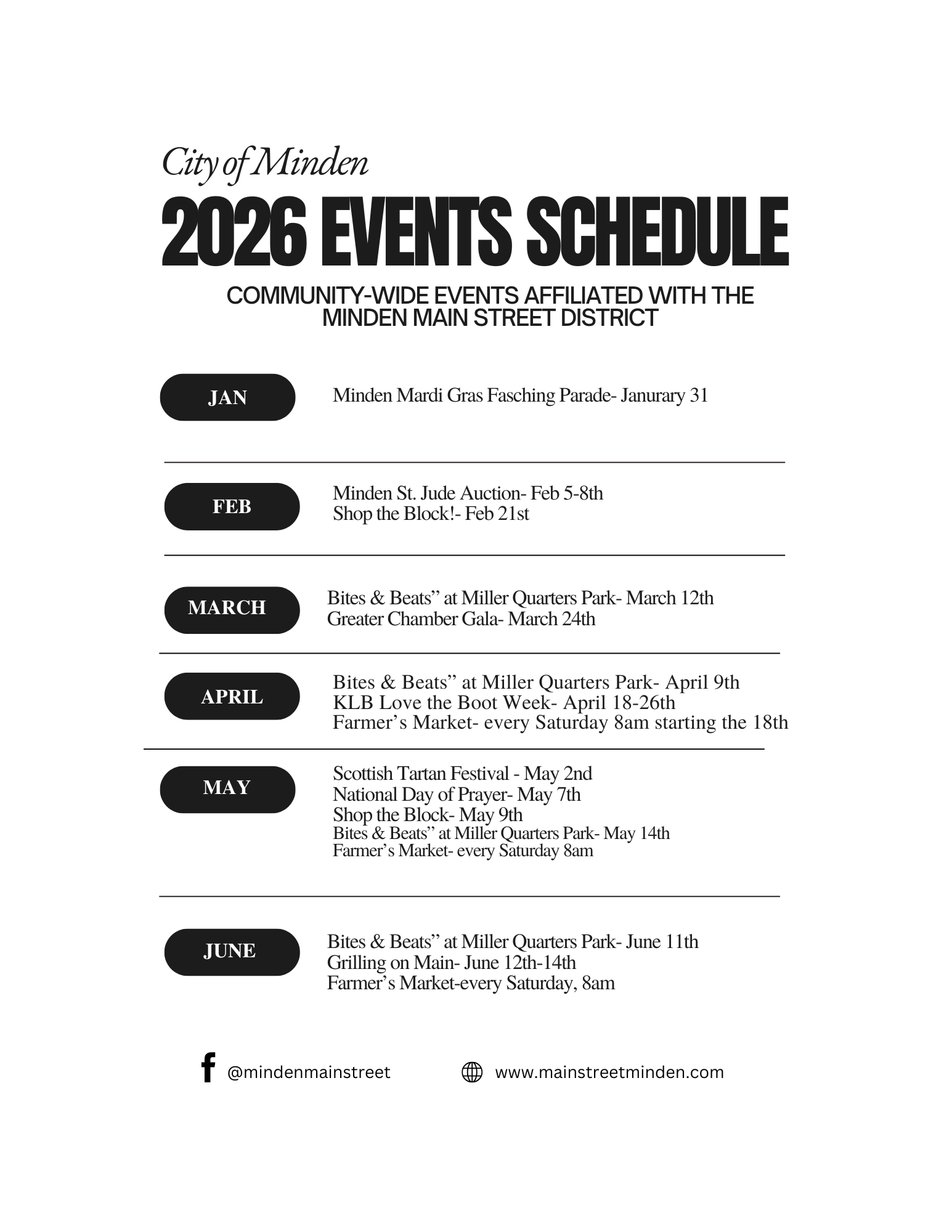 Come explore, celebrate, and be part of the story of Minden Main Street!